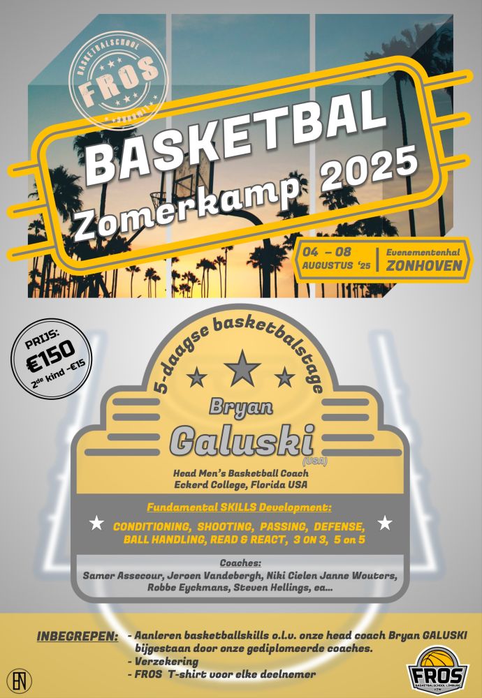 FROS organiseert van 4 tot en met 8 augustus een zomerkamp te Zonhoven. Dit is een zeer leerrijke basketstage die gegeven wordt door enkele ervaren coaches en spelers. Zeker een aanrader dus! Meer info en inschrijven kan via deze folder: